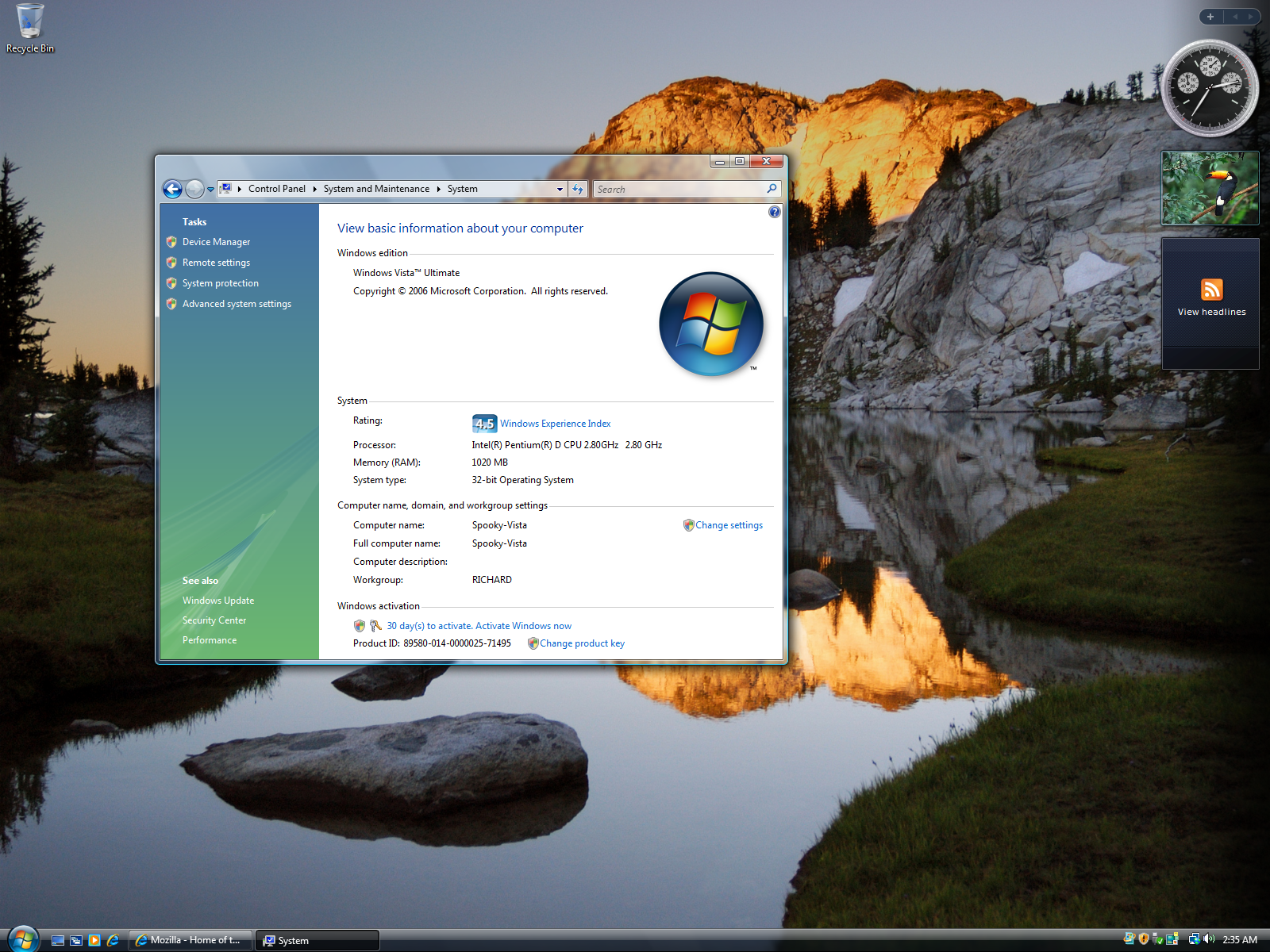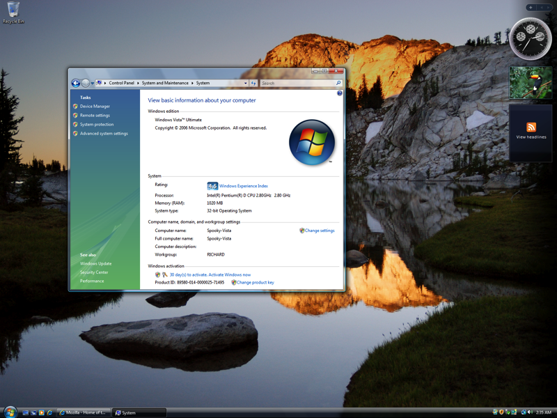 the mission, Vista consuming 7.68GB of it, leaving me with a 4.5 on the "Windows Experience Index". Do I like it? First impressions - yes, time will tell though.