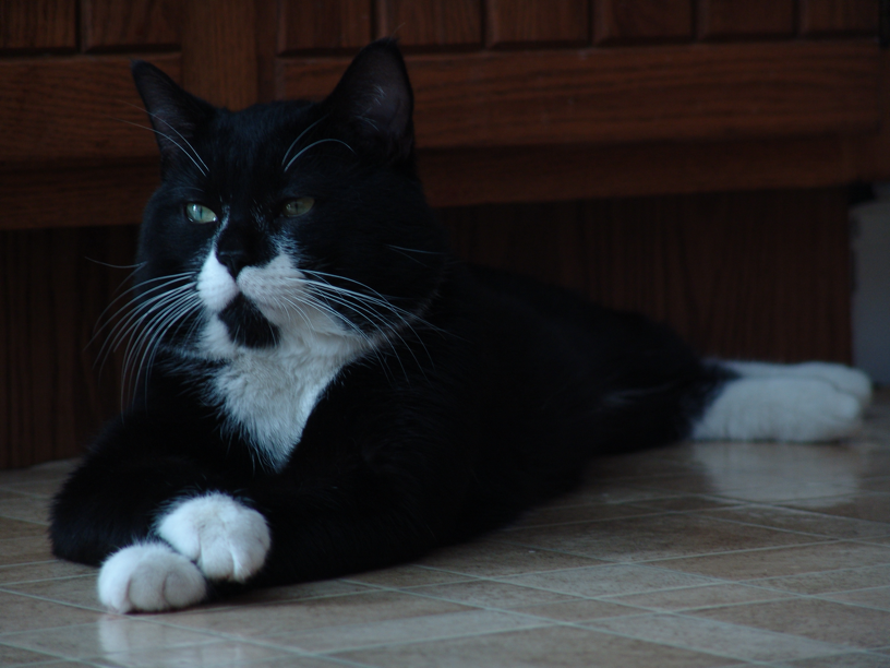 place - and get inside with my help. Neither of our other two cats like him much. One cat sits on a chair under the table, and the other one scoots off to a bedroom and lays