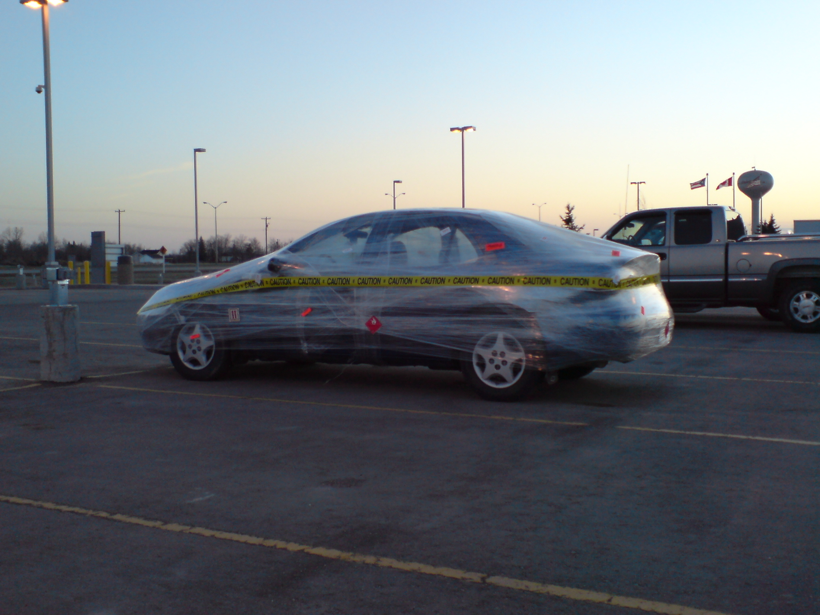 the boulevard in Steinbach, MB between Ste. Anne Co-op North and Superstore - all mangled and twisted no less. Some ghost town by the name of Gretna (spelling?), had winds blow